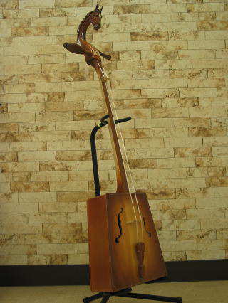 モンゴル国の馬頭琴の中でも特別大型のもので、通常の馬頭琴よりも約10センチ全長が長く、