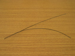 | ワイヤー 弦を交換するときに使います。 テイルピース・馬頭・糸巻きの穴に弦を通す時、簡単です。 もっと細い穴に通す場合は、糸を巻く・・・という秘技があります。 |