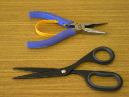 | ラジオペンチ&はさみ テイルピースの穴に固着した弦を外すとき等、弦を力を入れて引っ張る時に有効です。 切れた弦や弓の弦(つる)の端っこを、そのままにしているのを見かけますが、きれいに処理しましょう。 |