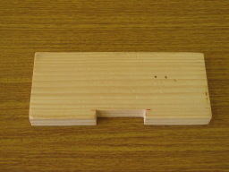 | かまぼこ板 のこぎり・切り出しで削る時の台として使います。 下部の切り込みは、アールの付いた表板と下駒の接地面を合わせるときの、補助に使います。 |