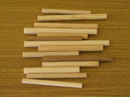 | 魂柱素材 以前は日曜大工センターで購入していましたが、現在はバイオリン用(7ミリ径)・チェロ用(8ミリ径)を購入しています。 年輪の通った、曲がりの無いものを選びます。 モンゴル国で8ミリ径・内モンゴルで7ミリ径が標準です。 |