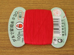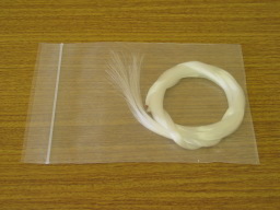 | 木綿糸 交換する弦の3つ編みする根元を縛ったり、ワイヤーを使用できない小さな穴に弦を通す時に使用します。 何の糸でも良いですが、滑りにくさと強度が、選択ポイント。 弦に20回ぐらい巻いて糸の端を穴に通し引いてやると、すんなり細い穴でも弦が通ります。 |