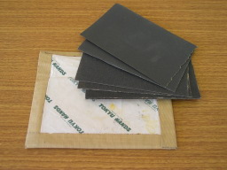 紙やすり 駒の高さ調整・弦を通す穴のエッジの処理・ネックの塗装剥ぎ等に使います。耐水ペーパーの♯400・♯800を用意。 |
