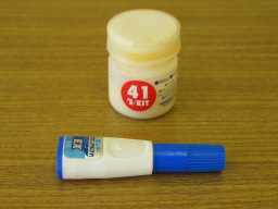 | 接着剤 フランクリン社のタイトボンドを、少量容器に入れています。木と同じ硬さに硬化します。 瞬間接着剤 普段使いませんが、このタイプは「ふた」がしっかりしているので、長期間保存可能です。 |