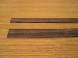 | 黒檀板 (1ミリ厚・2ミリ厚) 上駒の高さが足り無い時・接地面が小さい時や、ネックとボディの接合部のがたつきの修理などに使用します。 |